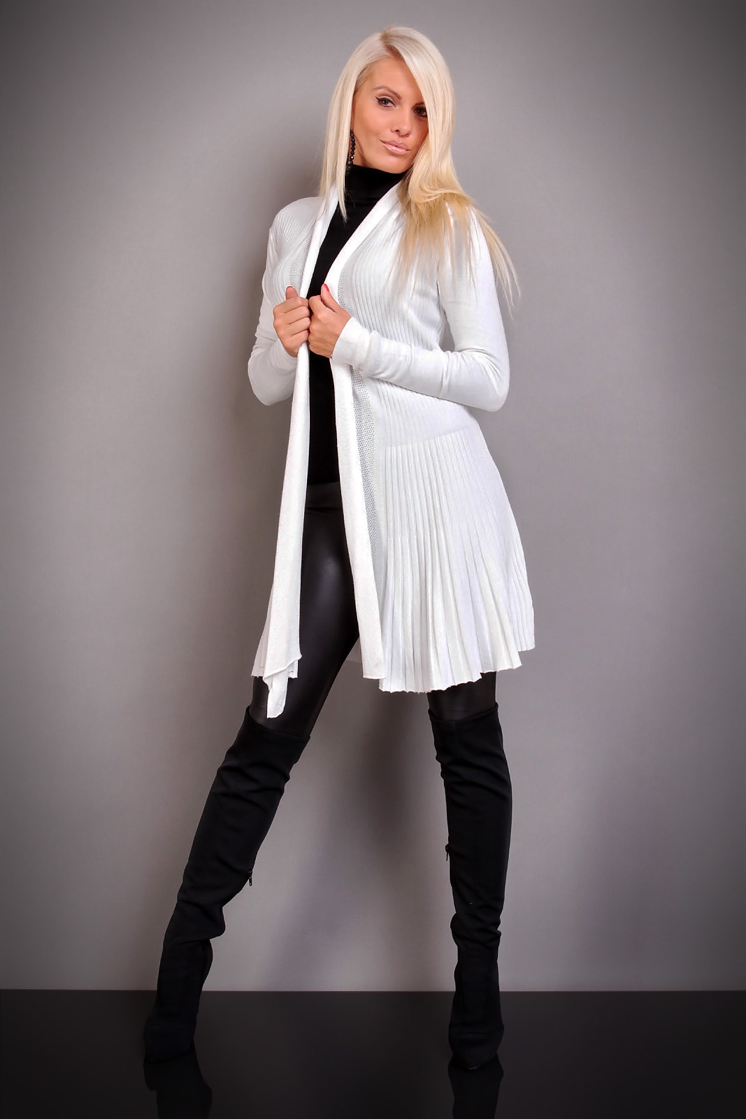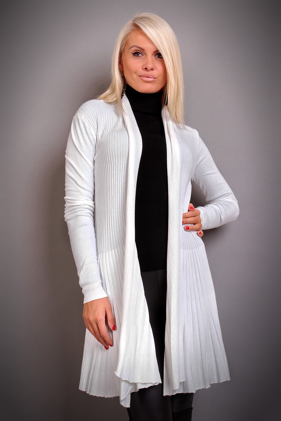 Stickad lång vit kofta/cardigan.