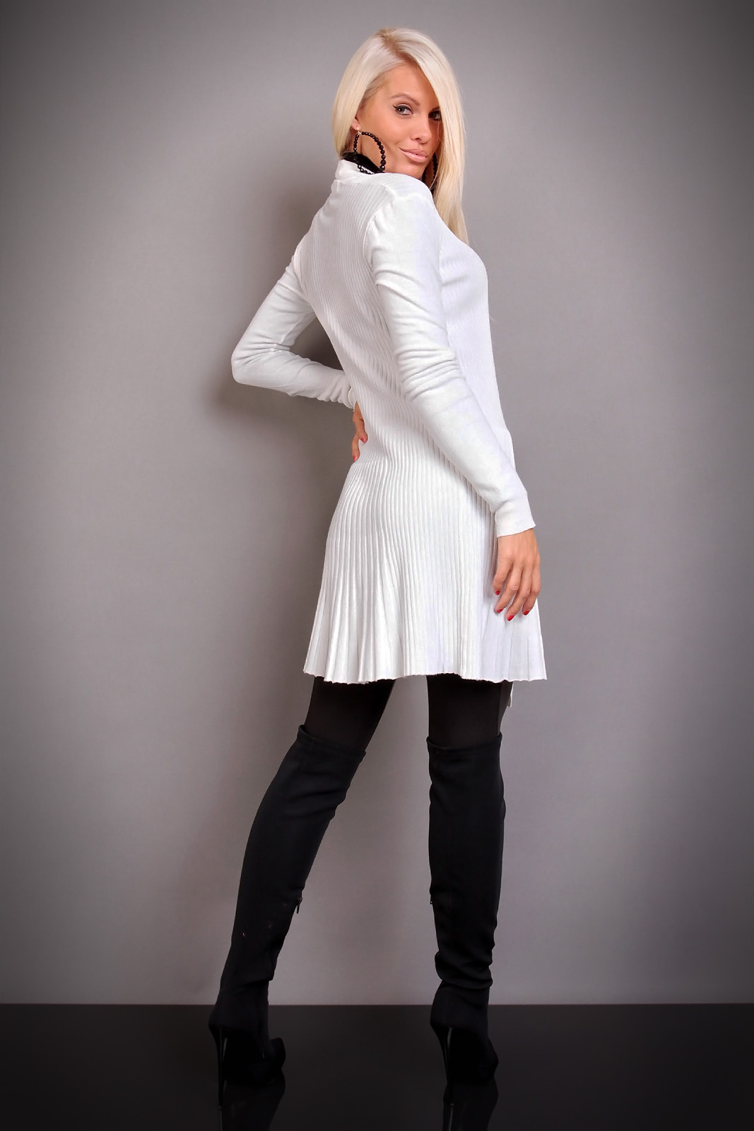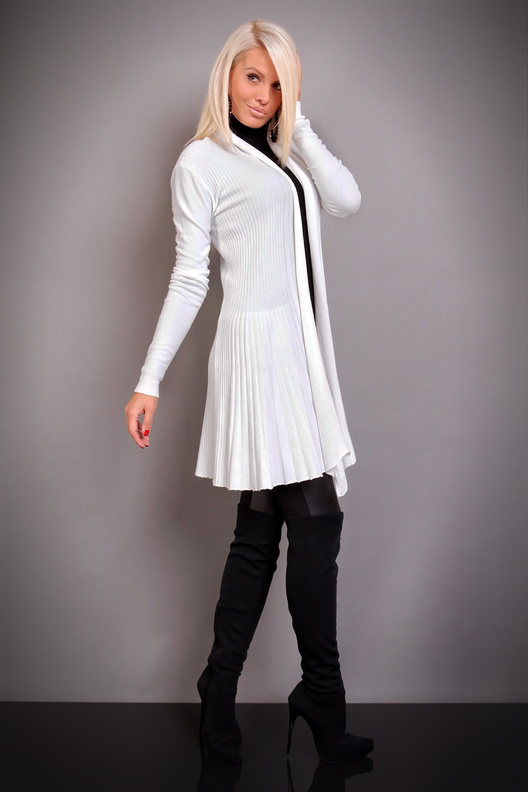 Ribbstickad med långa ärmar.