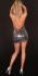 Kort klänning med små små paljetter, öppen rygg och nackkedja.